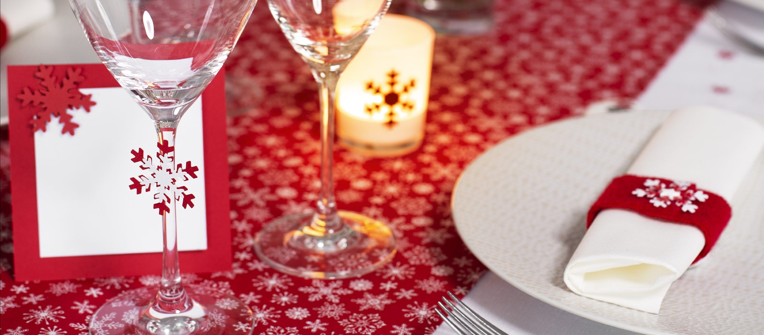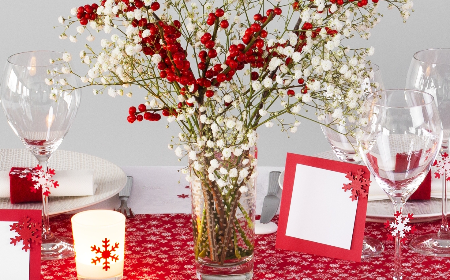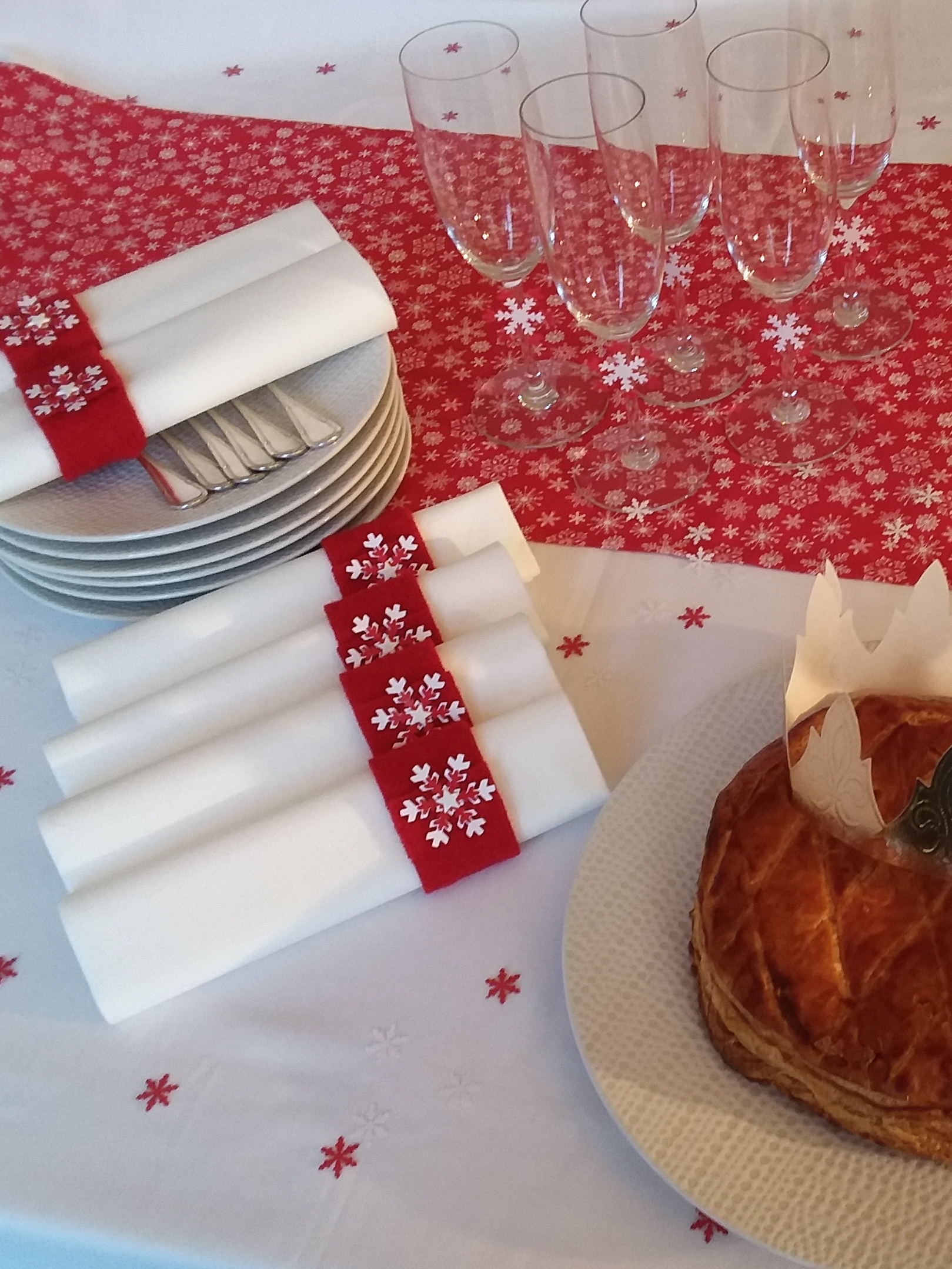Les coffrets Flocons sont composés de différents éléments pour la décoration du centre de table et autour de l’assiette de chaque invité (attention ! La vaisselle, les verres et couverts n’en font pas partie) .